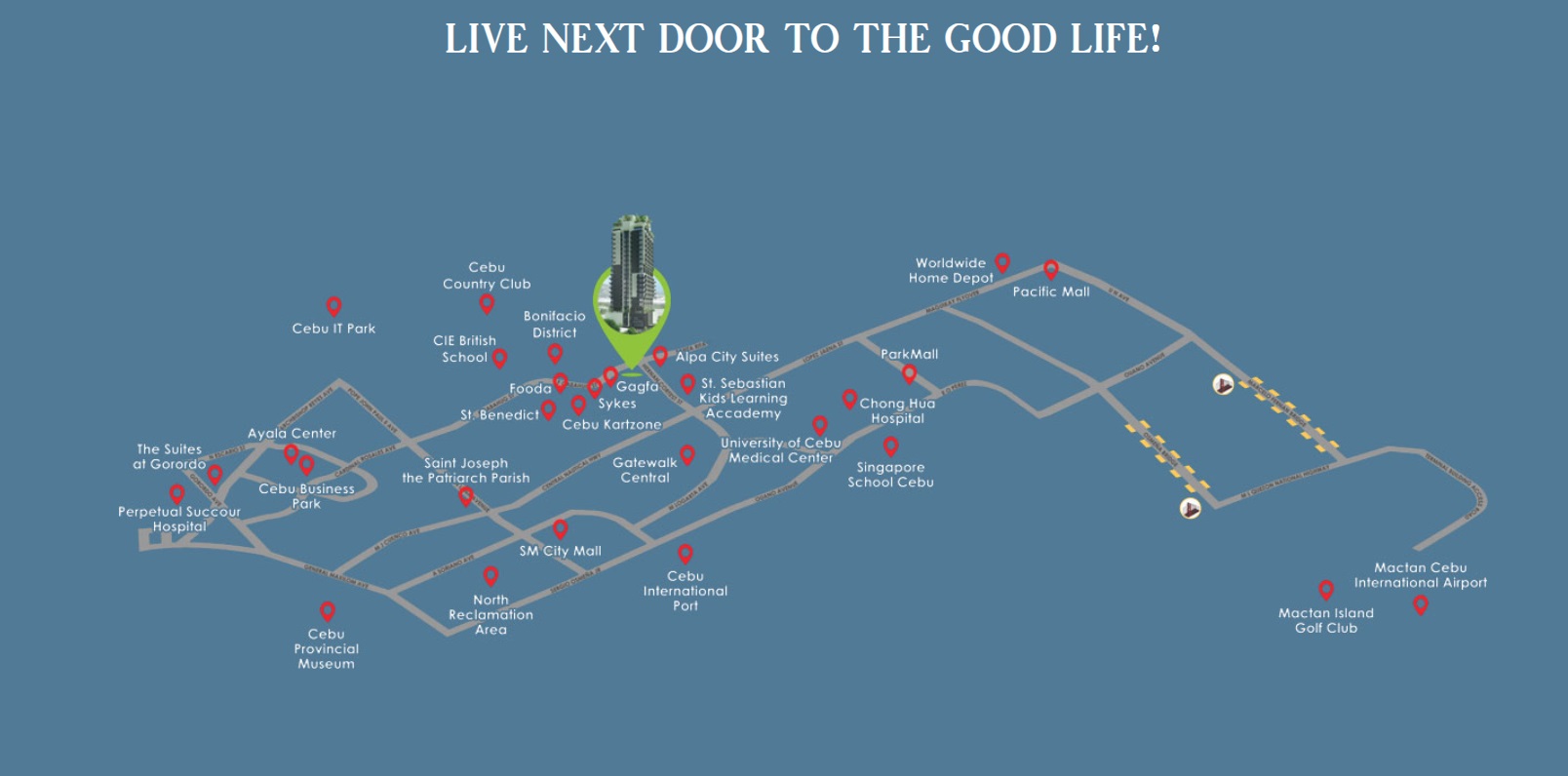 - 9.5 km Mactan Cebu Int’l Airport