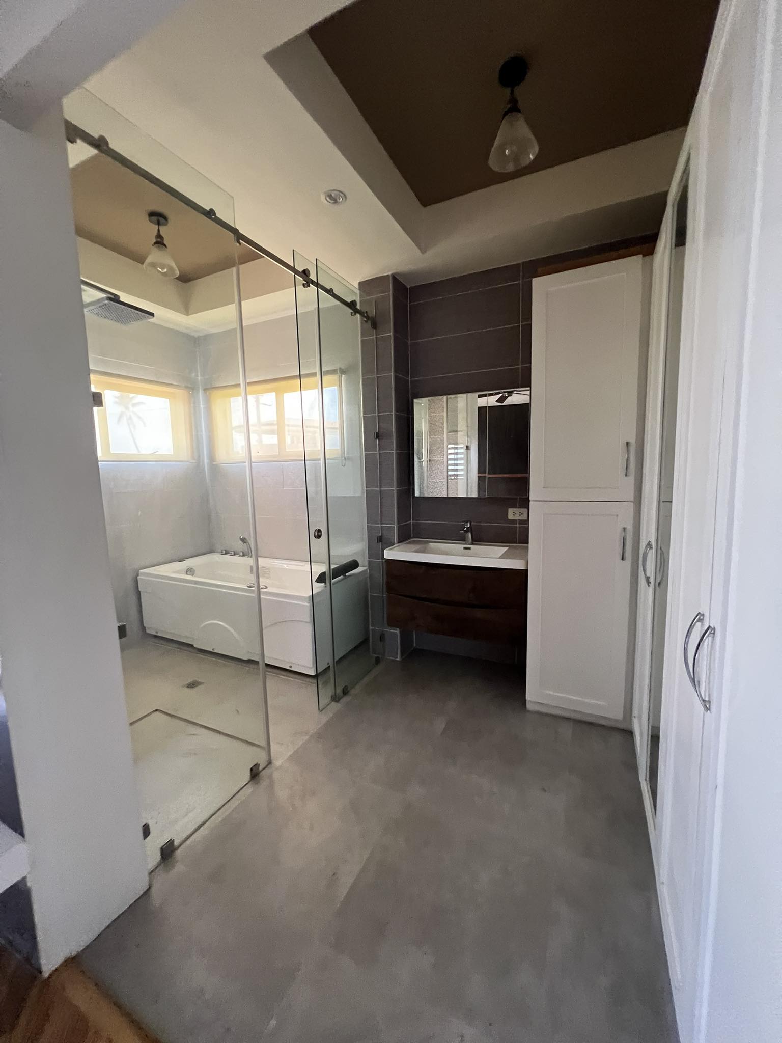 Master bedroom with toilet/bath tub and Jacuzzi/ cabinet